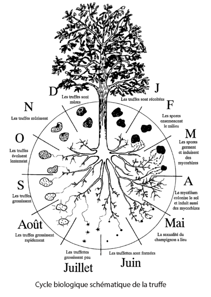 Focus sur le processus de développement de la truffe, de la plantation à la récolte.